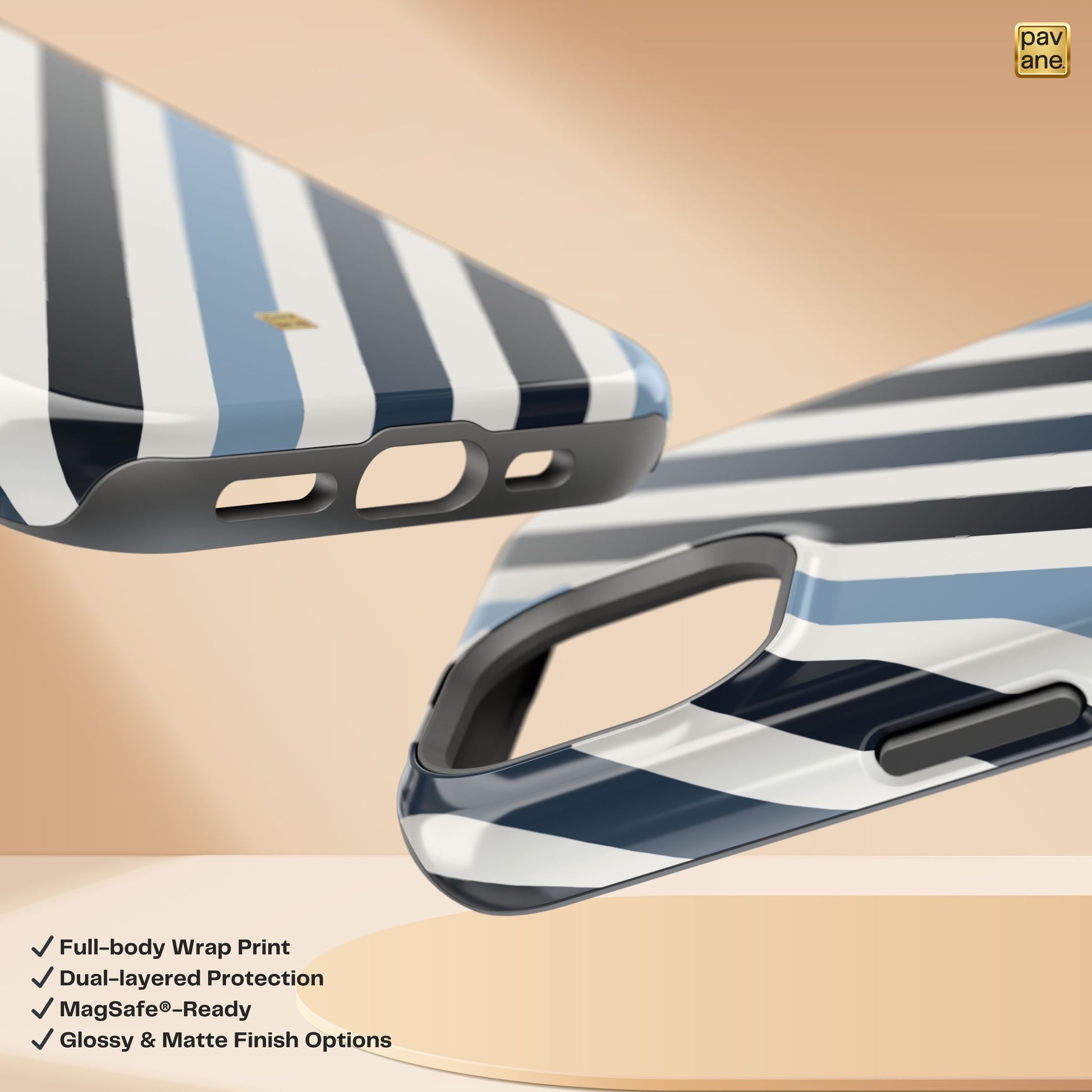 ✔ Timeless Aesthetic – Refined, high-fashion stripes wrap around your case, embodying sophistication in every detail.